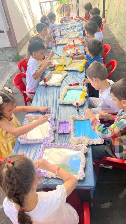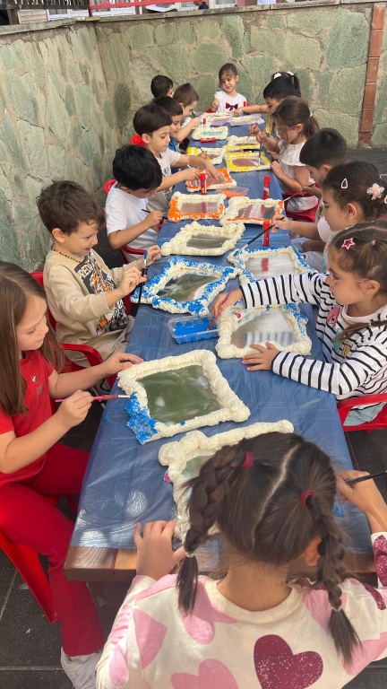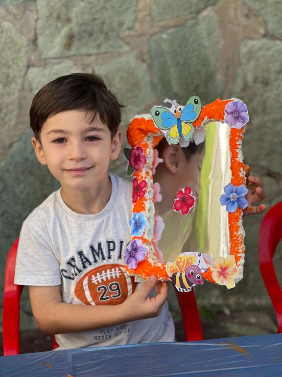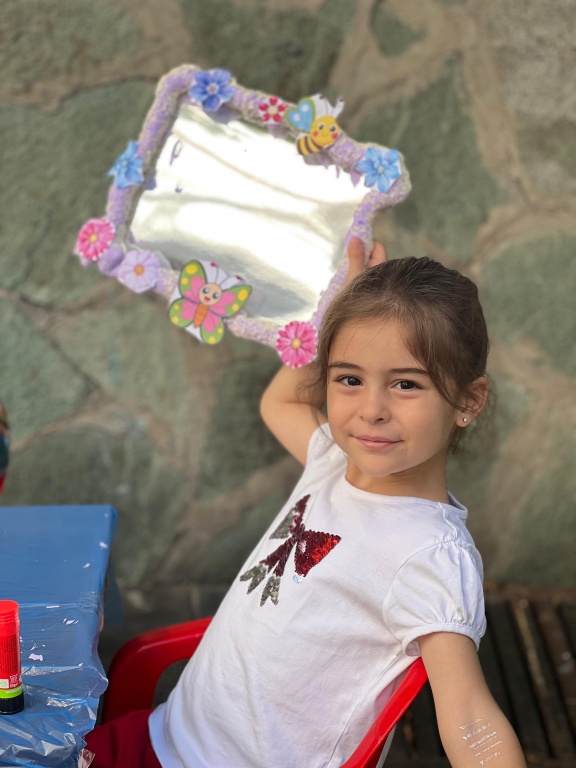 5 YAŞ A GRUBU ÖĞRENCİLERİ HAYAL GÜÇLERİNİ KULLANARAK KENDİ AYNALARINI TASARLADILAR. RENKLİ BOYALAR, ÇEŞİTLİ MATERYALLER VE HAYAL GÜÇLERİYLE BİRLİKTE ORTAYA HARİKA SONUÇLAR ÇIKTI. BU ÇALIŞMA HEM EĞLENCELİ HEM DE ÖZGÜN OLMASININ YANI SIRA EL BECERİLERİNİN DE ÖN PLANA ÇIKTIĞI SANATSAL BİR ÇALIŞMA OLDU.
